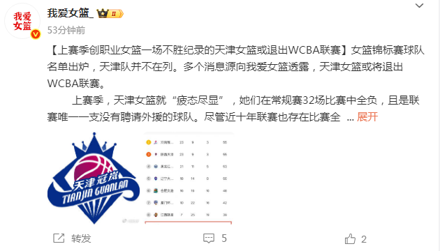 乐鱼体育app-又一队!曝天津女篮或退出WCBA 上季0胜32负创历史最差