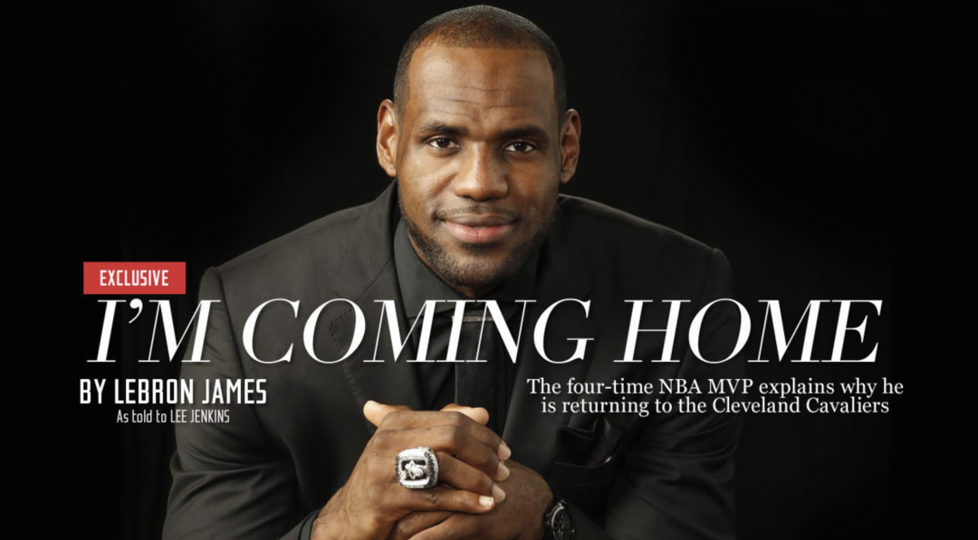 上一次詹姆斯在传统媒体发表署名文章,是2014年,当时他决定从热火重回克利夫兰,在《体育画报》发表长文《我要回家了》。全文是第一人称,但实际上的作者是《体育画报》的李·詹金斯——2018年,詹金斯前往快船,目前是快船篮球事务副总裁。